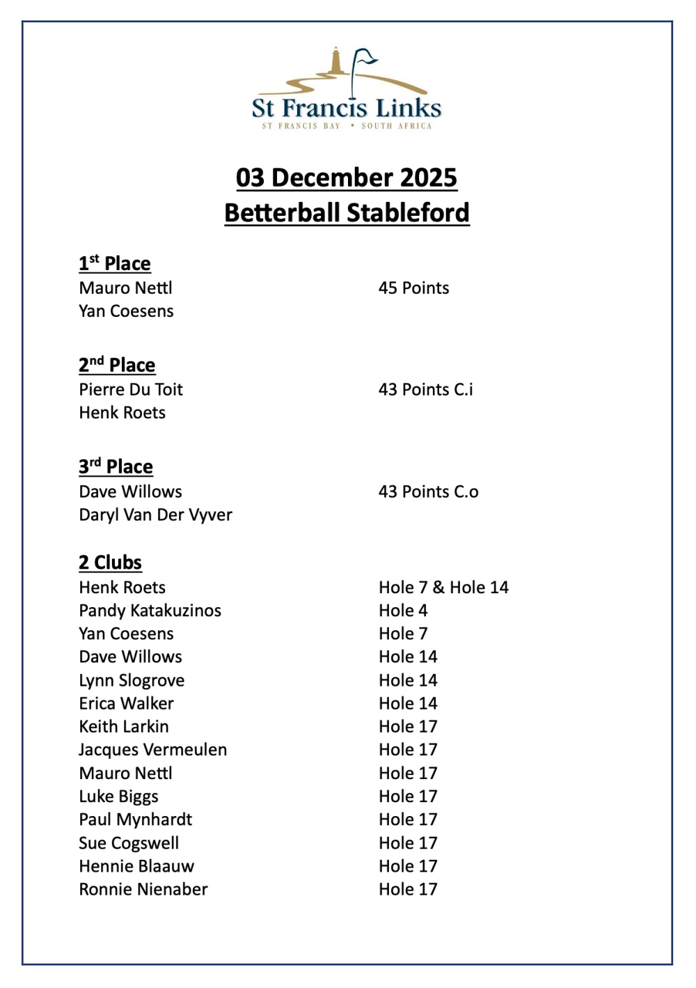 The Fitch & Leedes PGA Championship is proudly supported by Stinger GC, Momentum, Eastern Cape Parks and Tourism Agency (ECPTA), Kouga Municipality, Sarah Baartman District Municipality, Cape St Francis, Telkom and the PGA of South Africa. |