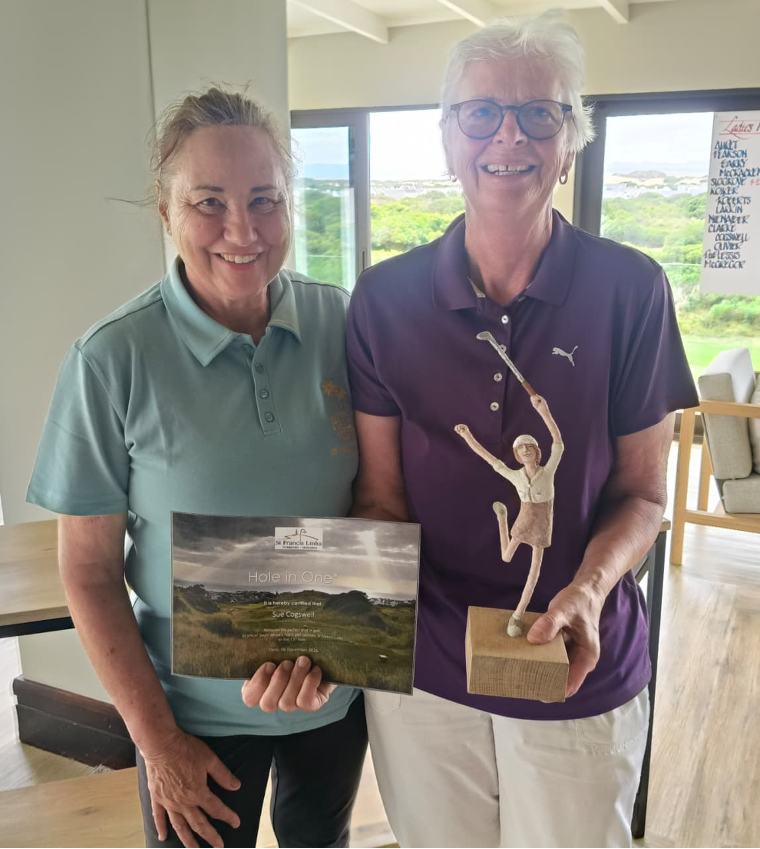 The highlight of the day belongs to our very own Ladies Captain, Sue Cogswell! She achieved the perfect shot, sinking her 4th career hole-in-one, and her first as a St Francis Links member! |