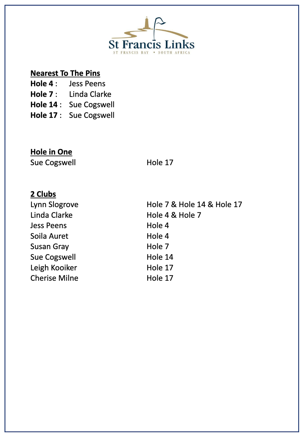 | We also want to give a special shout-out to Lynn Slogrove, who achieved an impressive three 2-clubs on the day.