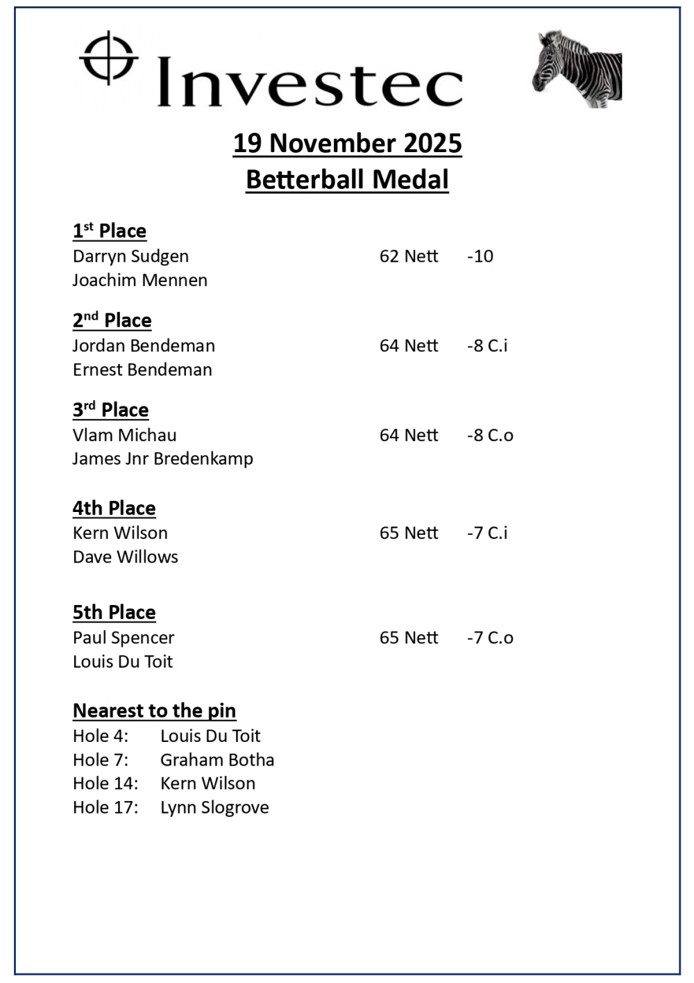 A round of applause goes to Charl Blaauw and his amazing team for showcasing the course so brilliantly, handling all the arrangements, and enjoying a well-deserved day with their peers. The evening culminated in a casual prize-giving at Joe Fish in Cape St Francis, where we had no loser – only winners – celebrating golf and the impact they make on every golfer that walks through the door. |